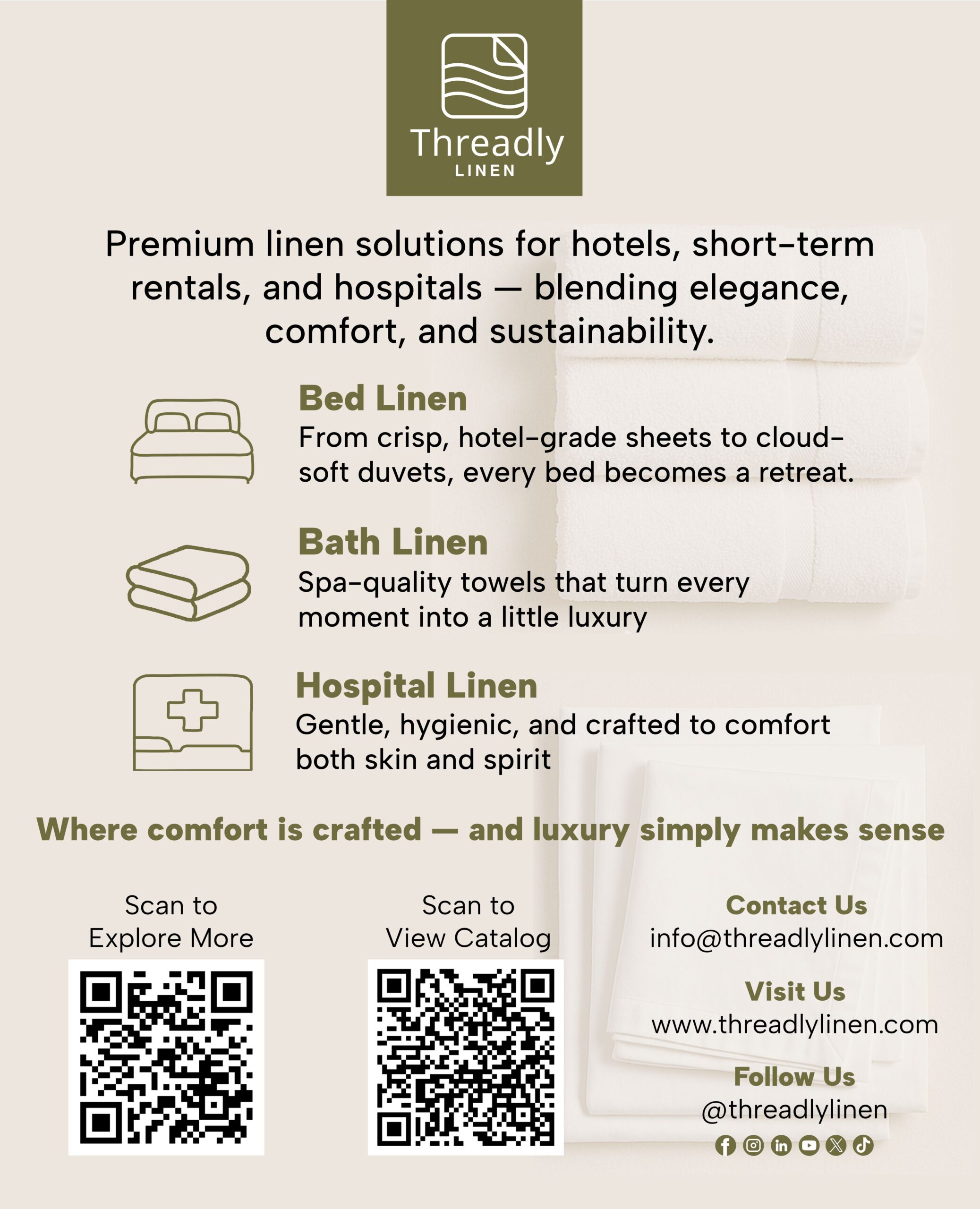 Upgrade your hospitality space with ThreadlyLinen’s high-quality linens, made for businesses that want to stand out.